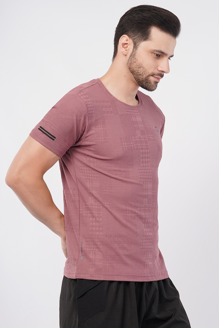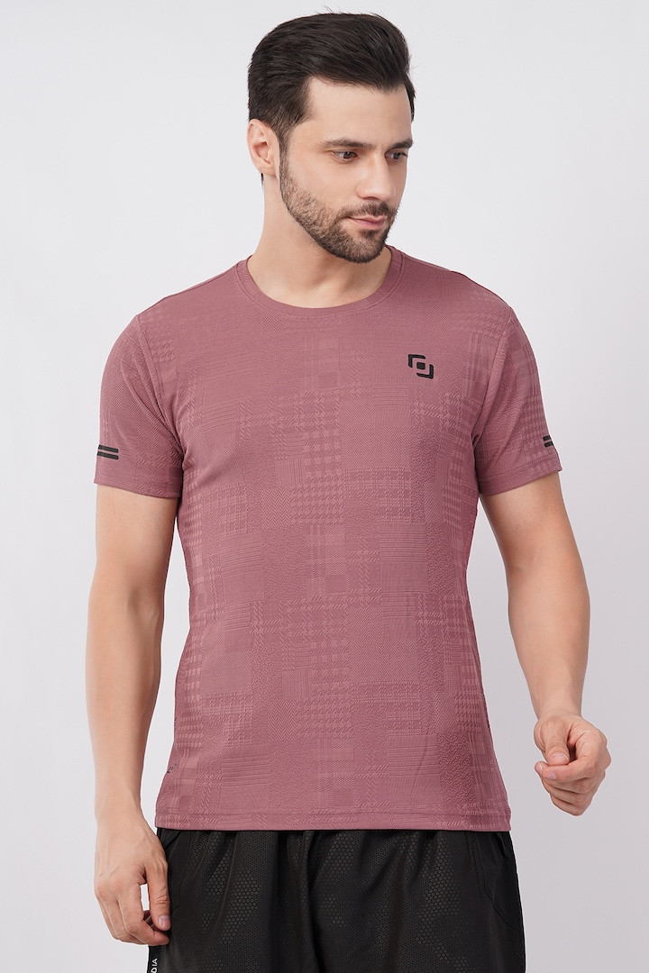 ASI Jaquard Lycra Fabric | Half Sleeve | Round Neck | T- Shirt | Super Streacable, Soft & Breathable | Both Men & Boys | Rosewood