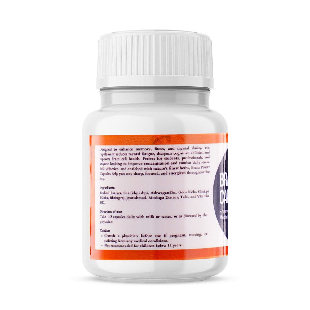 Brain Power Capsule | Memory Booster & Concentration | Supports Brain Cell Health & Cognitive Development | For Students & Professionals | Unisex 100% Ayurvedic