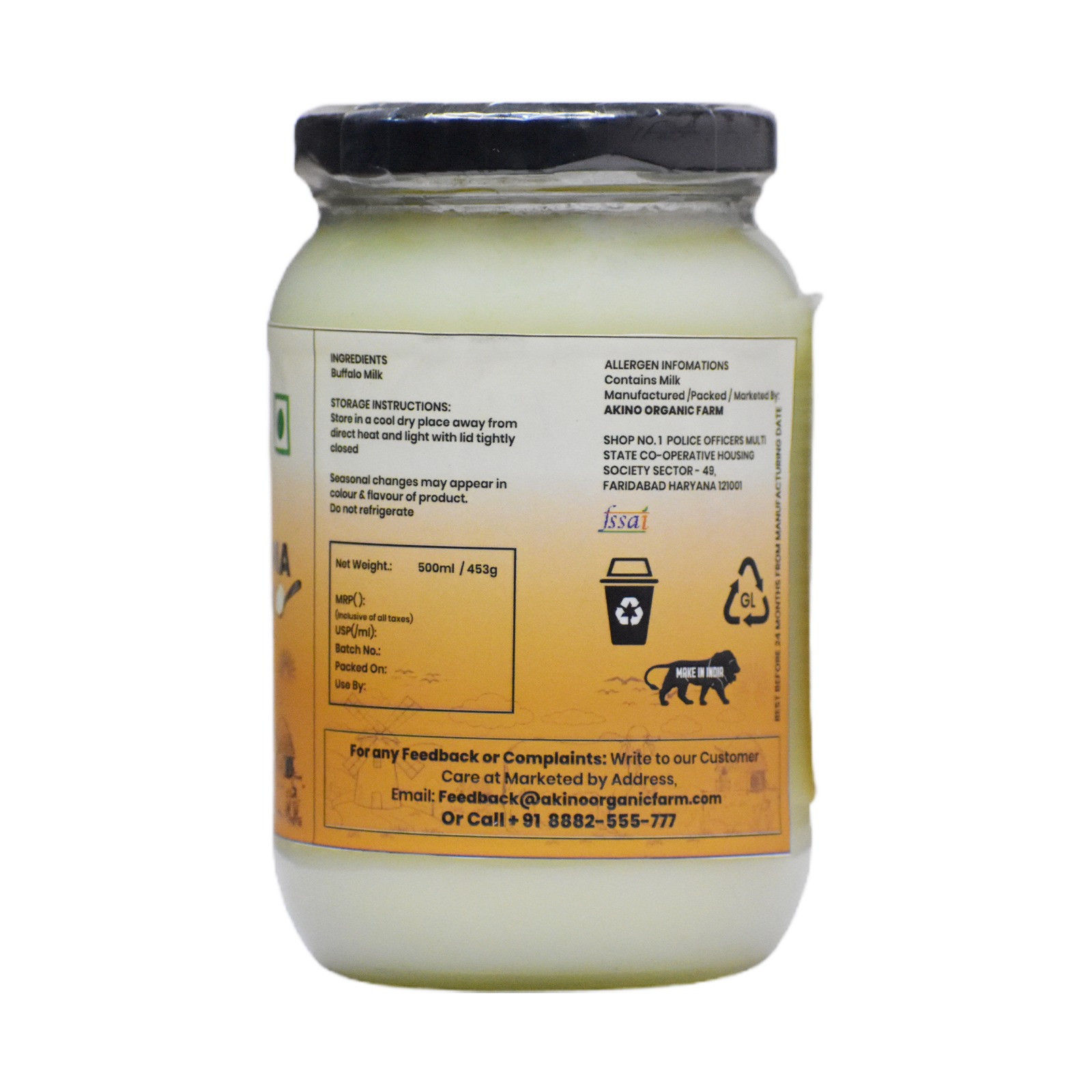 Akino Organic Murrah Buffalo Ghee 500 ml is crafted using premium quality Murrah Buffalo milk and prepared through the traditional bilona method to maintain purity and natural nutrition. This desi ghee has a rich aroma, smooth texture, and authentic taste that enhances the flavor of every meal. It is naturally rich in A2 nutrients and healthy fats that support digestion, immunity, and overall wellness. Perfect for cooking, Ayurvedic uses, and everyday consumption, Akino Organic Murrah Buffalo Ghee brings the goodness of traditional Indian dairy to your kitchen.