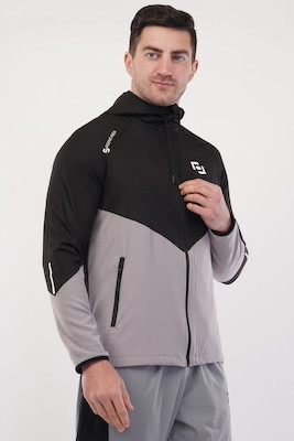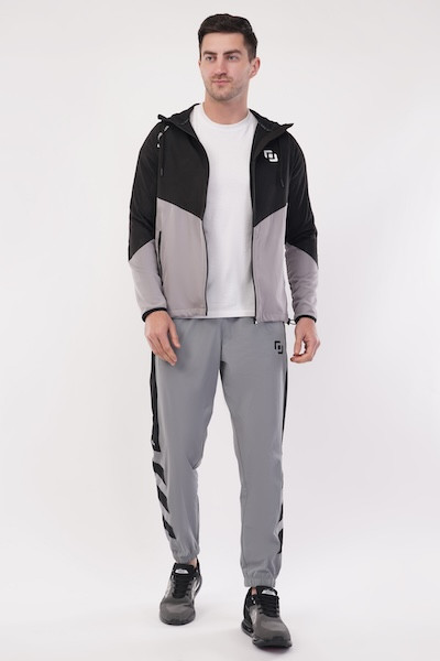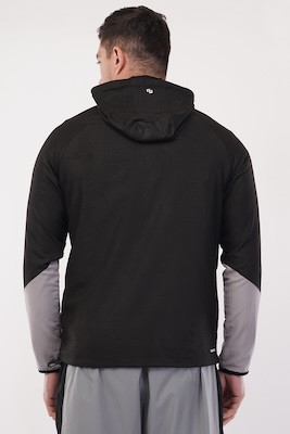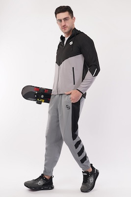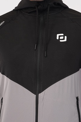 NS Dry Fit Regular Hoodie Upper With Soft Linner Fabric Inside | 2 Color Combination | Latest Design | Regular Wear | Upper | Hoodie | Black Print - Light Grey