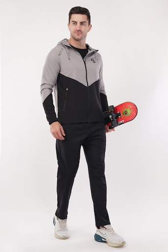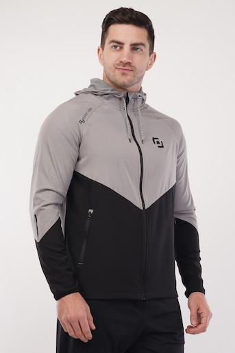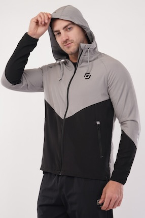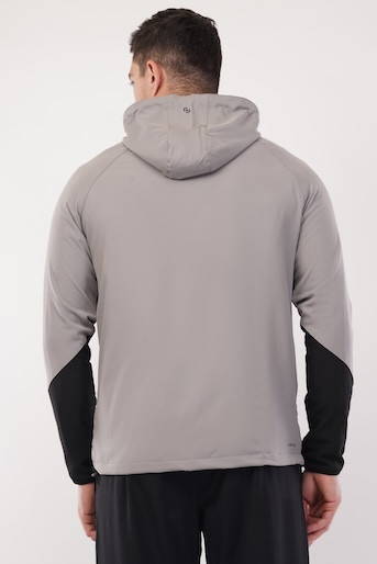 NS Dry Fit Regular Hoodie Upper With Soft Linner Fabric Inside | 2 Color Combination | Latest Design | Regular Wear | Upper | Hoodie | Light Grey Print - Black