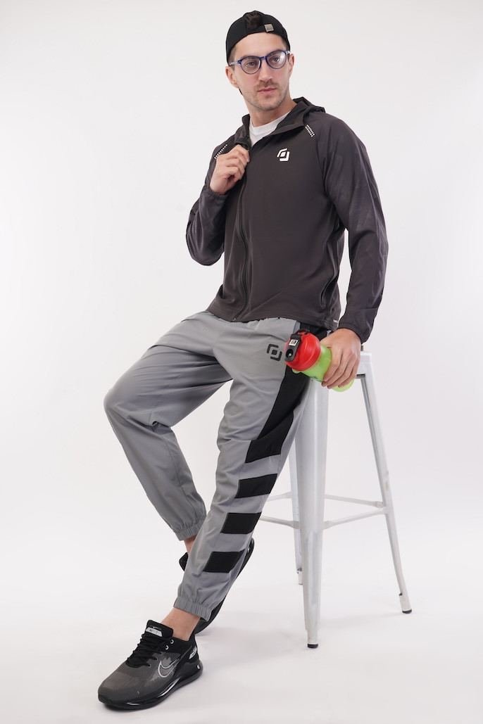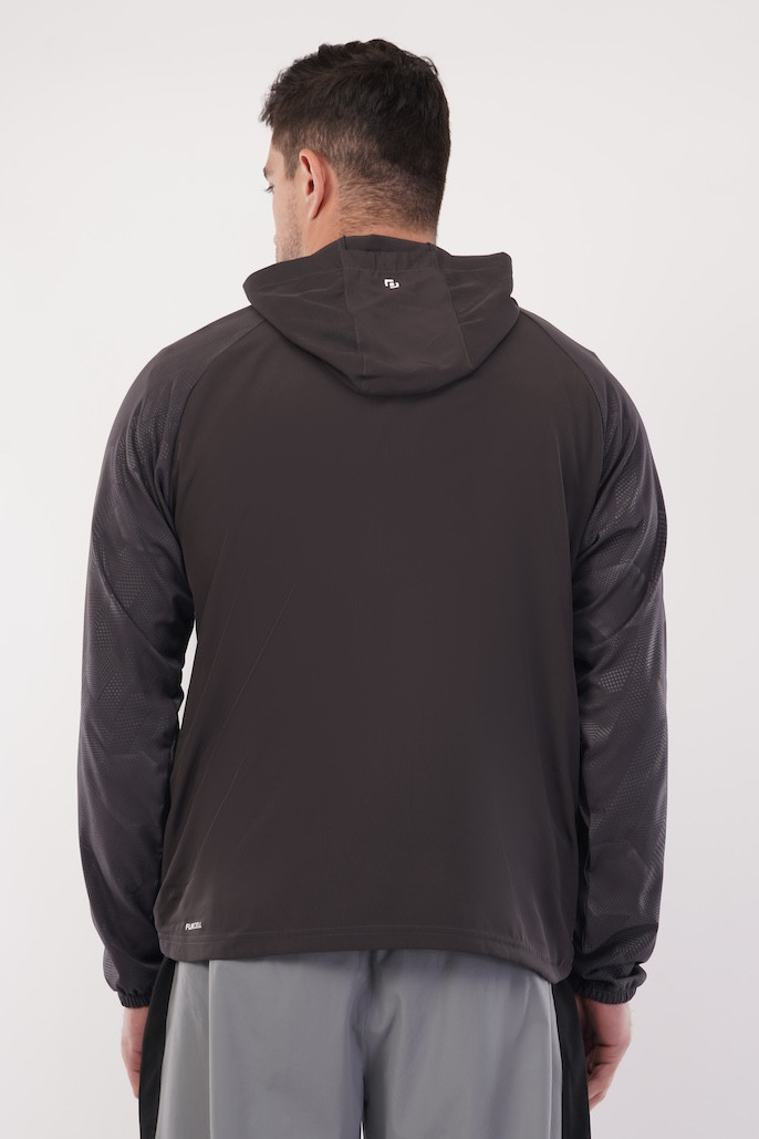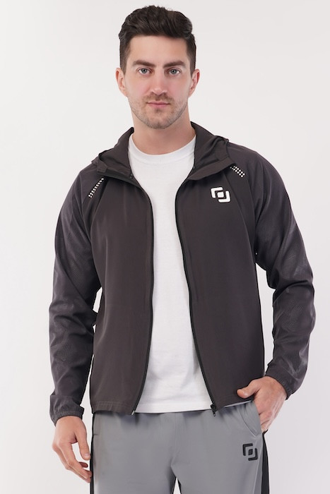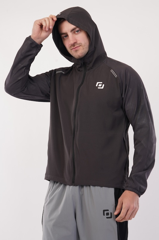 Run Fit AOP Woven Ultra Fit FLIK Cell Jacket | Upper with Hoodie | Advance Look | Combo for Men & Boy | Regular Fit | Sports, Gym, Running Jacket | Dark Grey