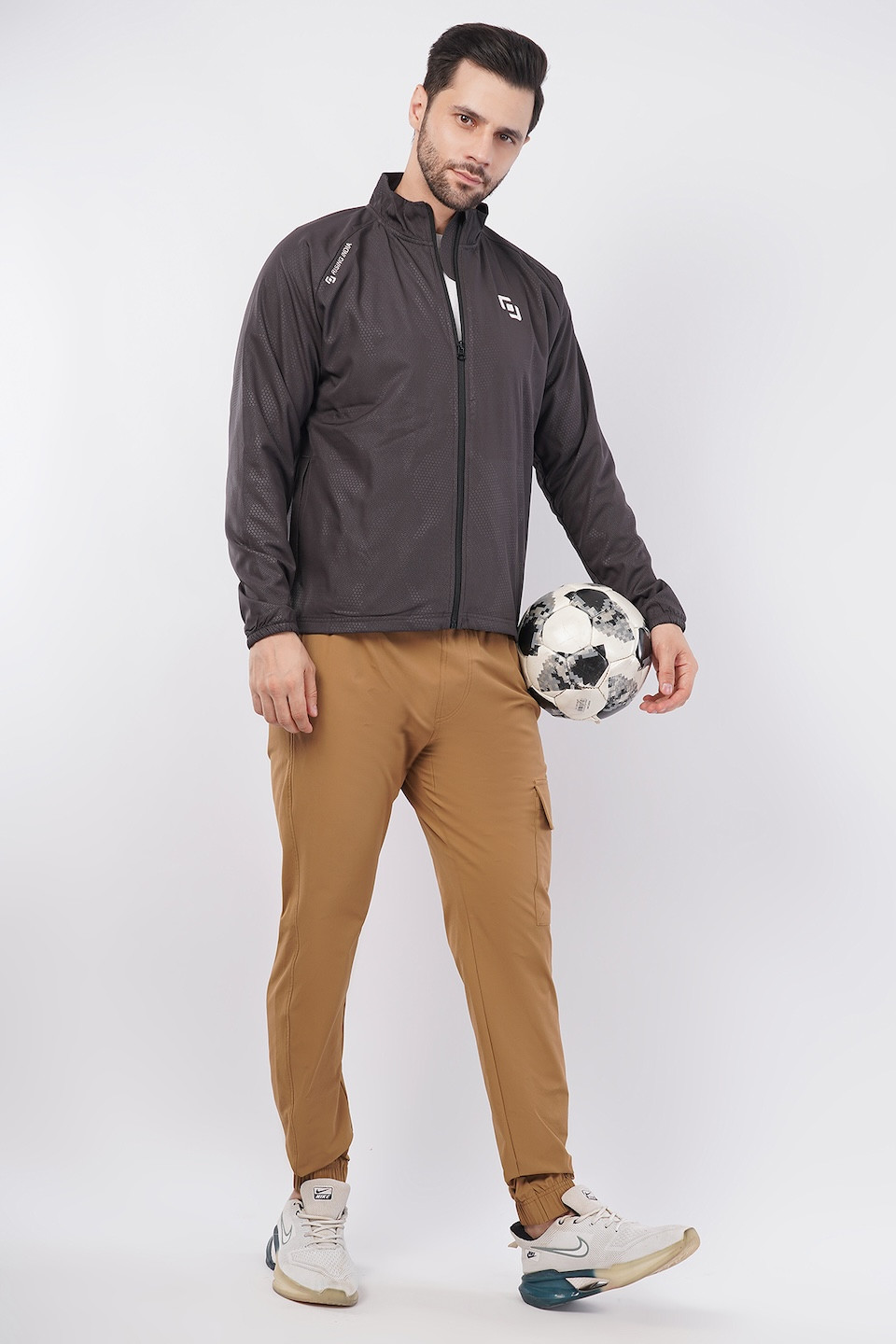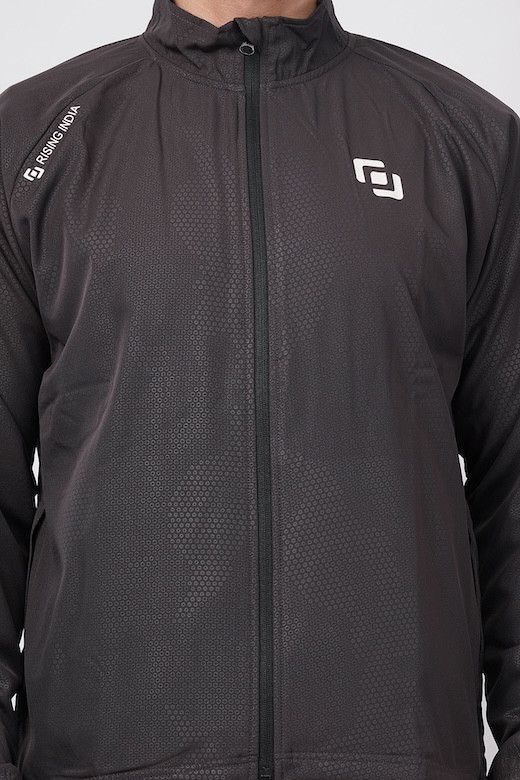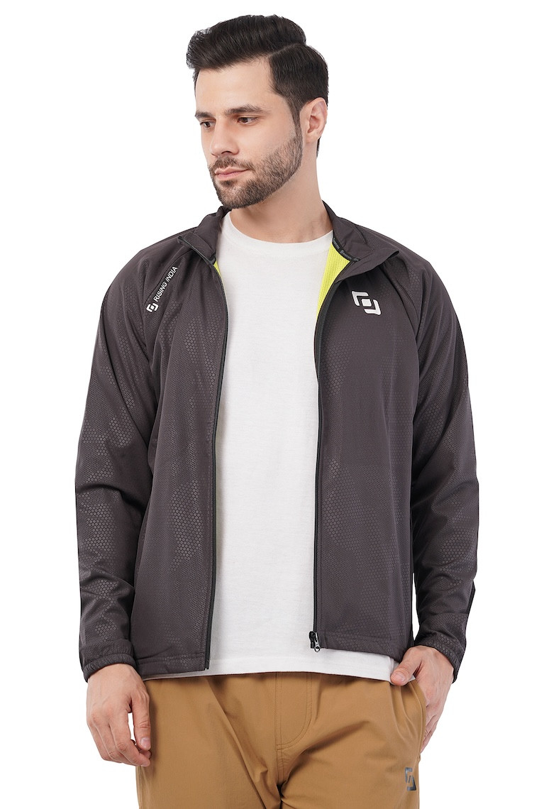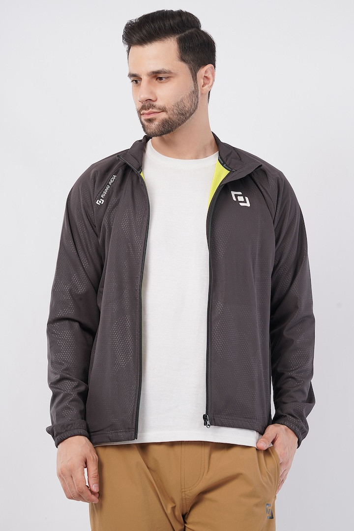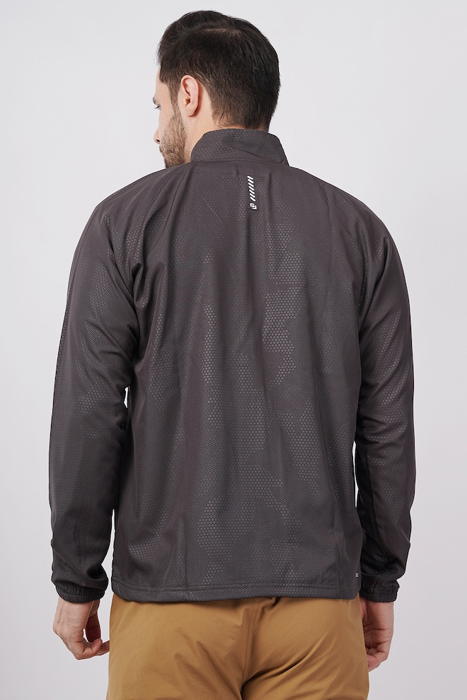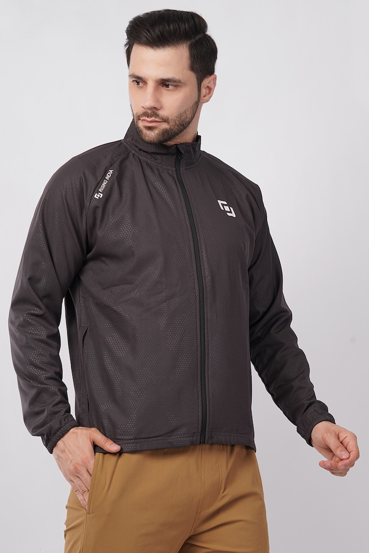 Sports Fit Men's Wear Full Sleeve Circle Print Zip Closer Jacket | Gym Workout, Running, Hiking, Travelling & Casual Wear | Dark Grey