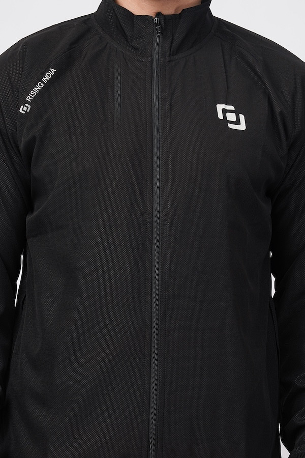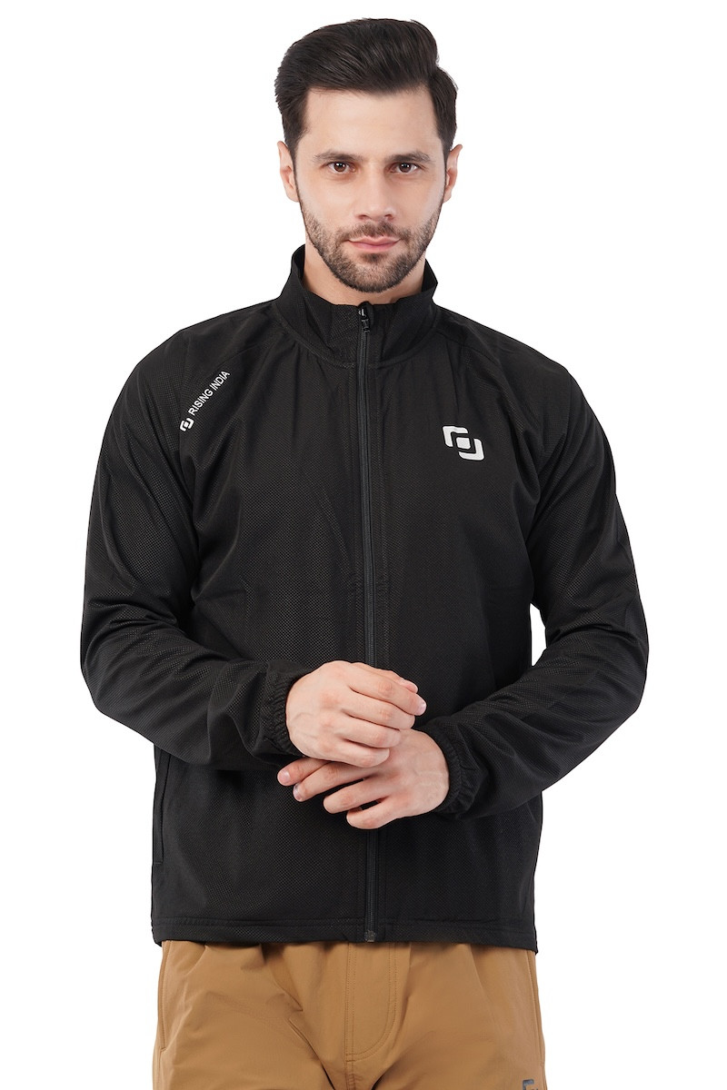 Sports Fit Men's Wear Full Sleeve Dot Print Zip Closer Jacket | Gym Workout, Running, Hiking, Travelling & Casual Wear | Black