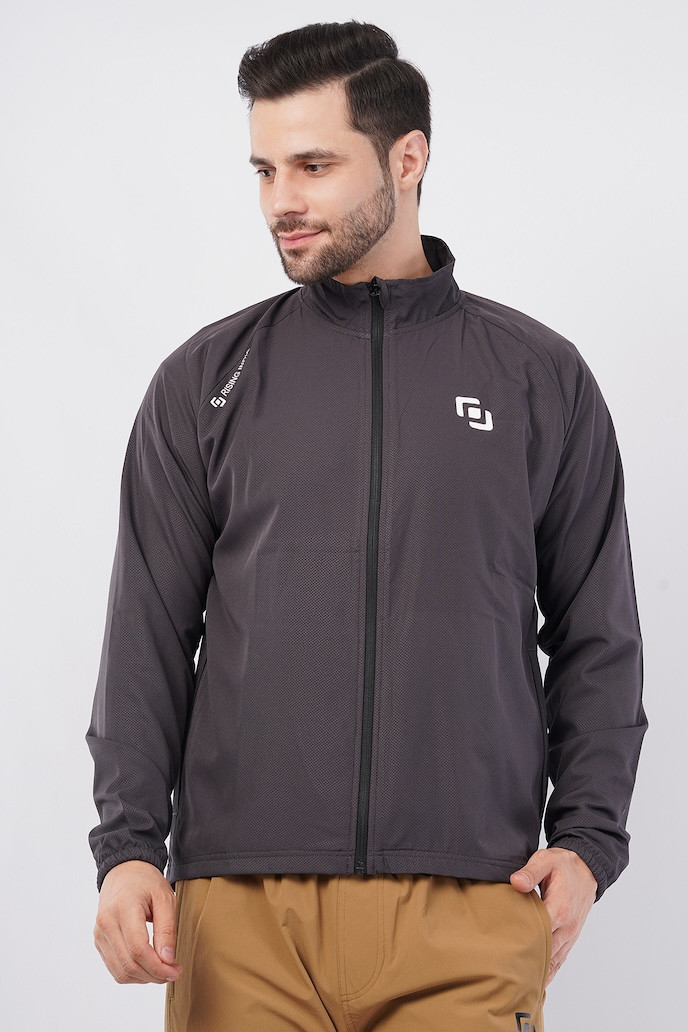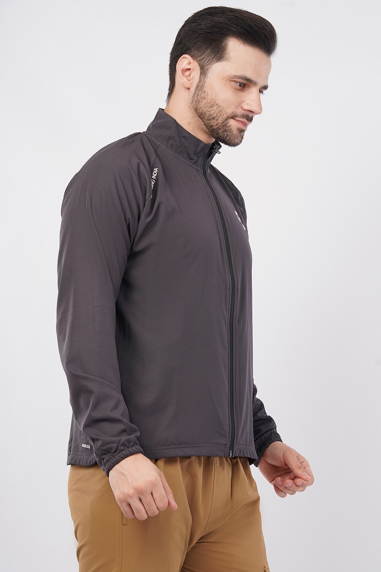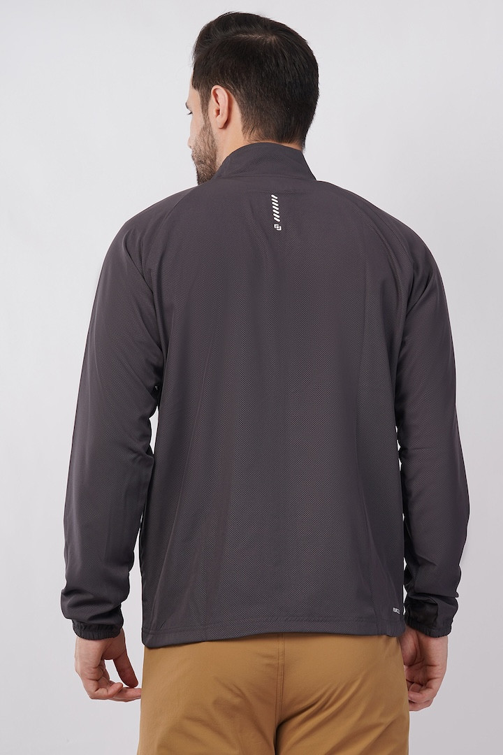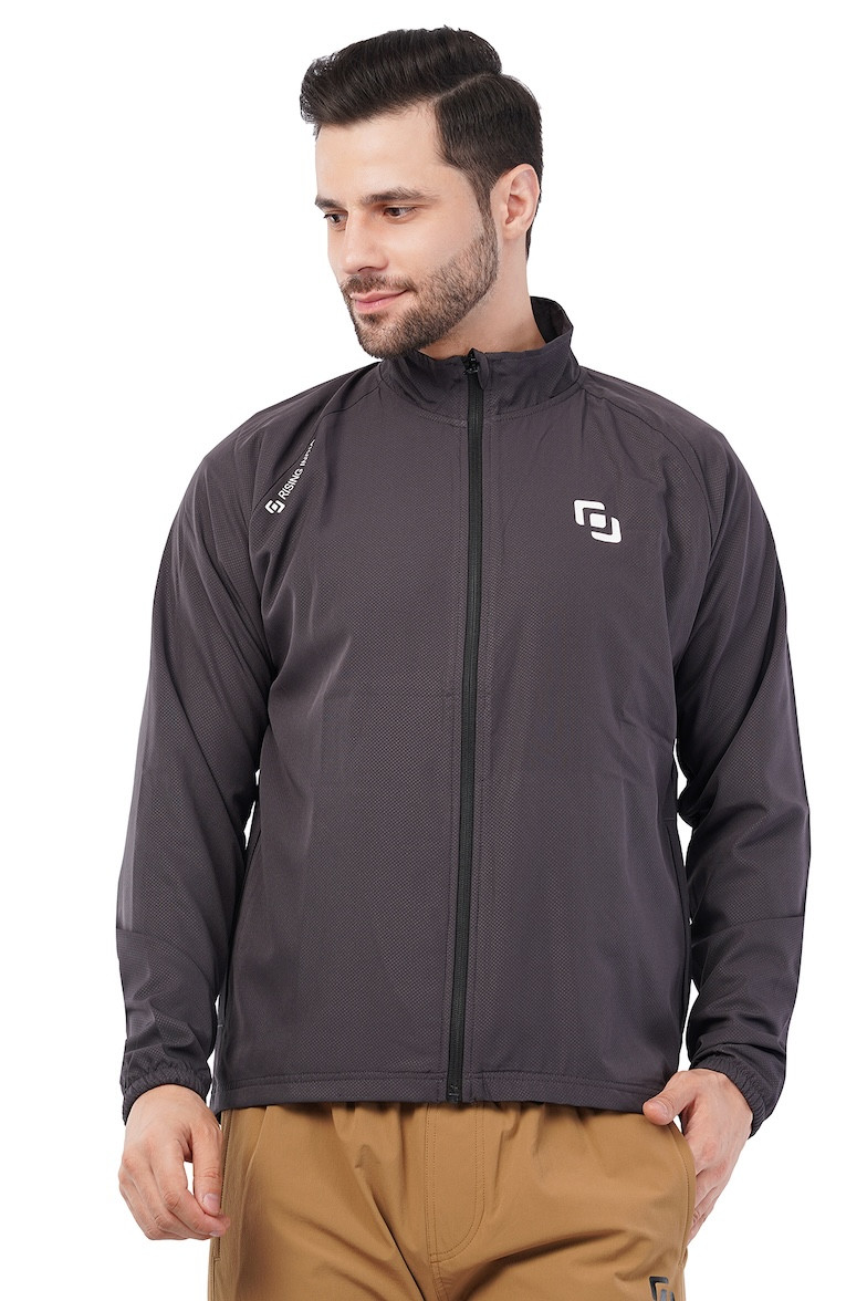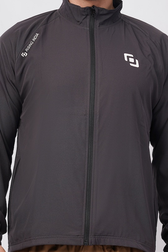 Sports Fit Men's Wear Full Sleeve Dot Print Zip Closer Jacket | Gym Workout, Running, Hiking, Travelling & Casual Wear | Dark Grey