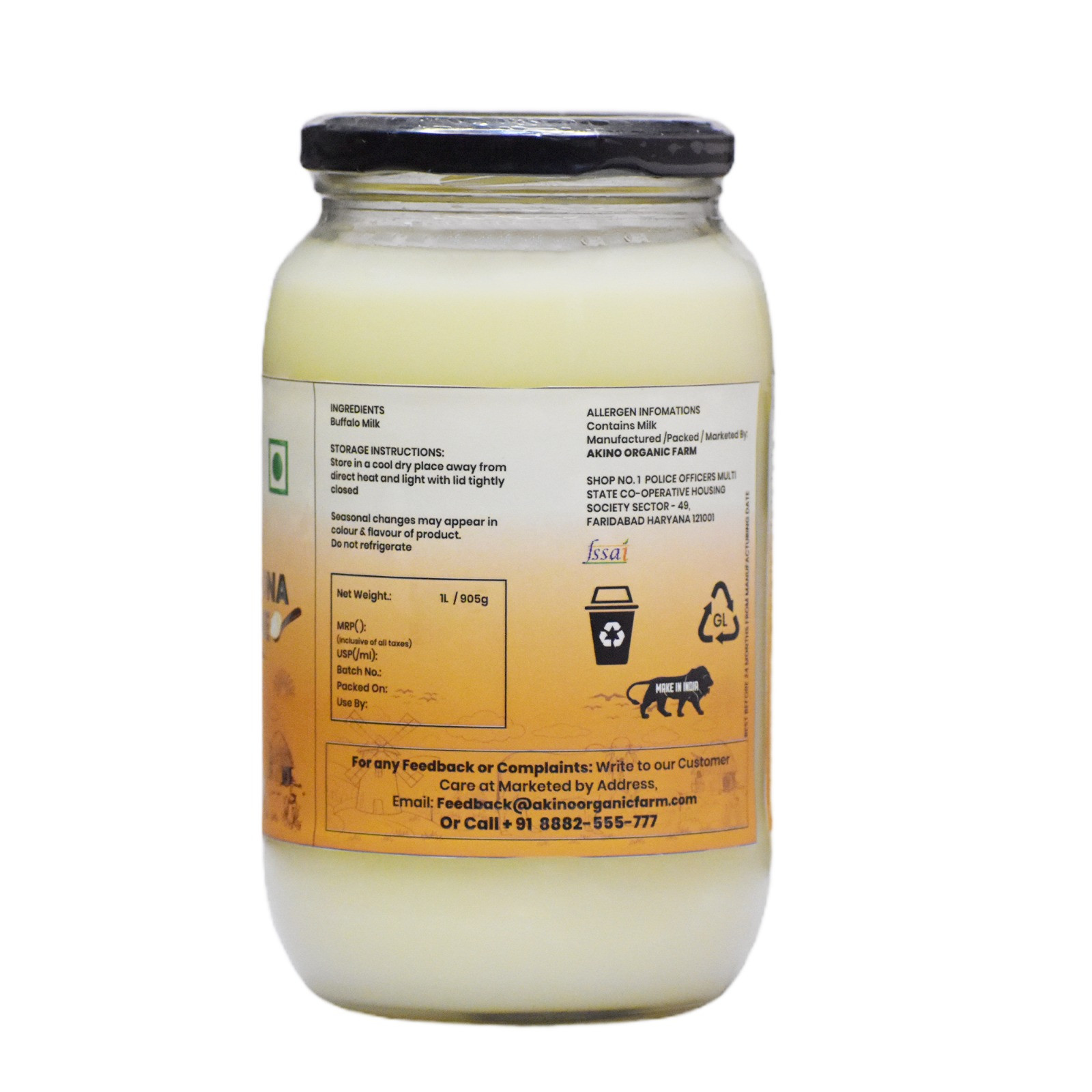The Akino Difference: Pure, Traditional, Conscious. At Akino Organic Farm (Estd. 2021), we believe in returning to the roots of Indian nutrition. Our A2 Murrah Buffalo Ghee is not just an oil; it is a "Superfood" crafted with patience. The Murrah Advantage: Murrah buffaloes are world-renowned for their high-fat, nutrient-dense A2 milk. This milk is naturally thicker and creamier, resulting in a ghee that is exceptionally rich in flavor and "Danedar" (grainy) in texture. The Bilona Process: Most commercial ghees are made by heating cream at high speeds. We follow the Vedic Bilona Method: