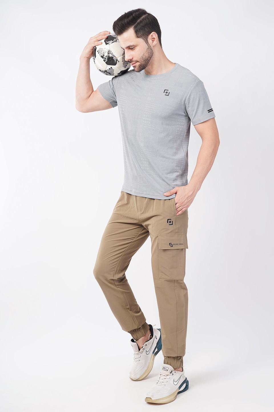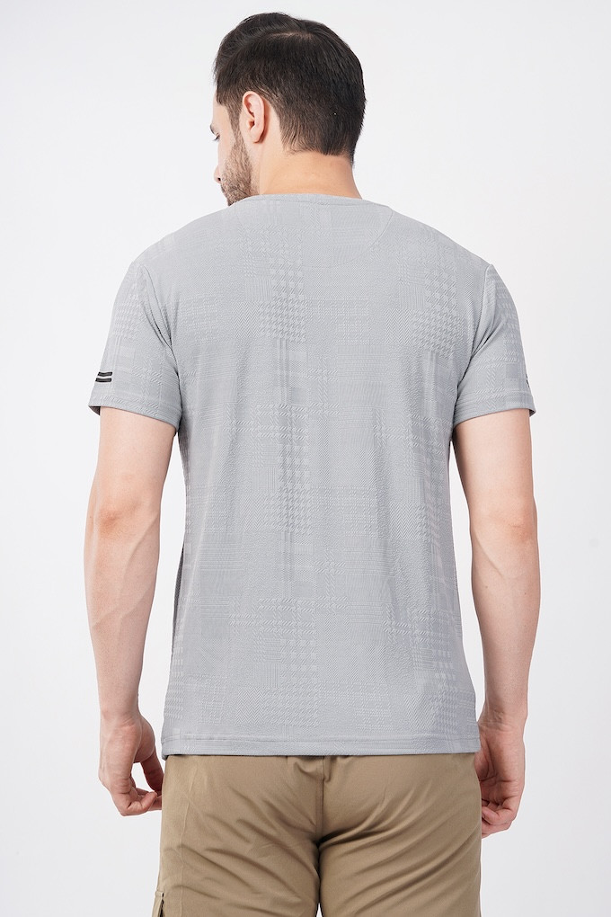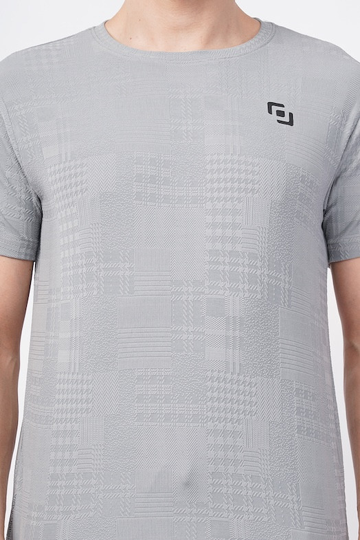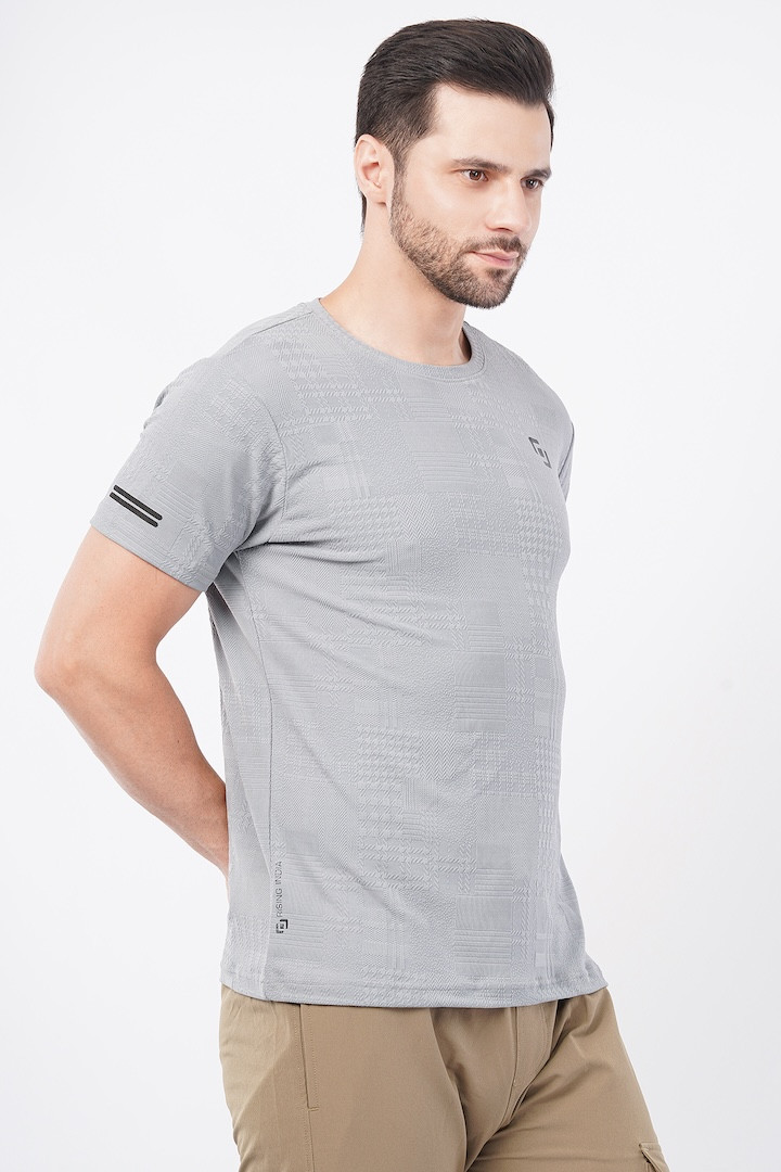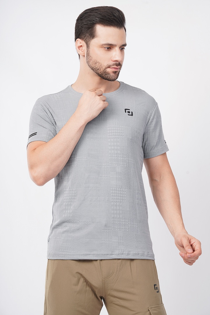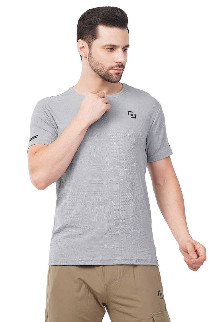 ASI Jaquard Lycra Fabric | Half Sleeve | Round Neck | T- Shirt | Super Streacable, Soft & Breathable | Both Men & Boys | Light Grey