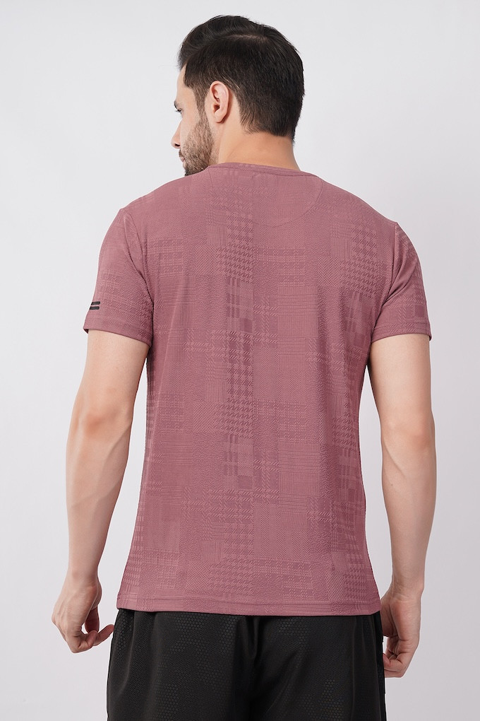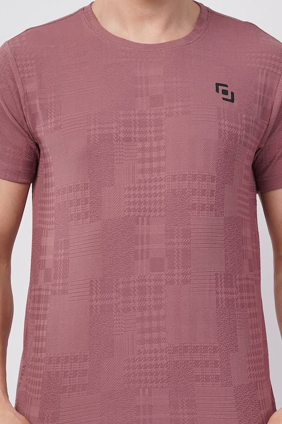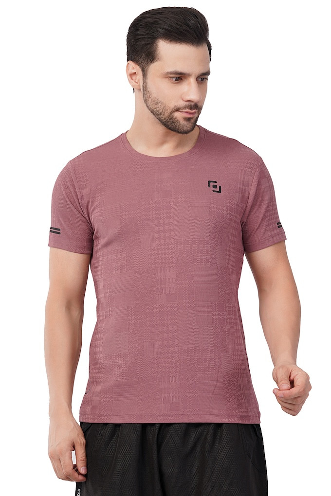 ASI Jaquard Lycra Fabric | Half Sleeve | Round Neck | T- Shirt | Super Streacable, Soft & Breathable | Both Men & Boys | Rosewood