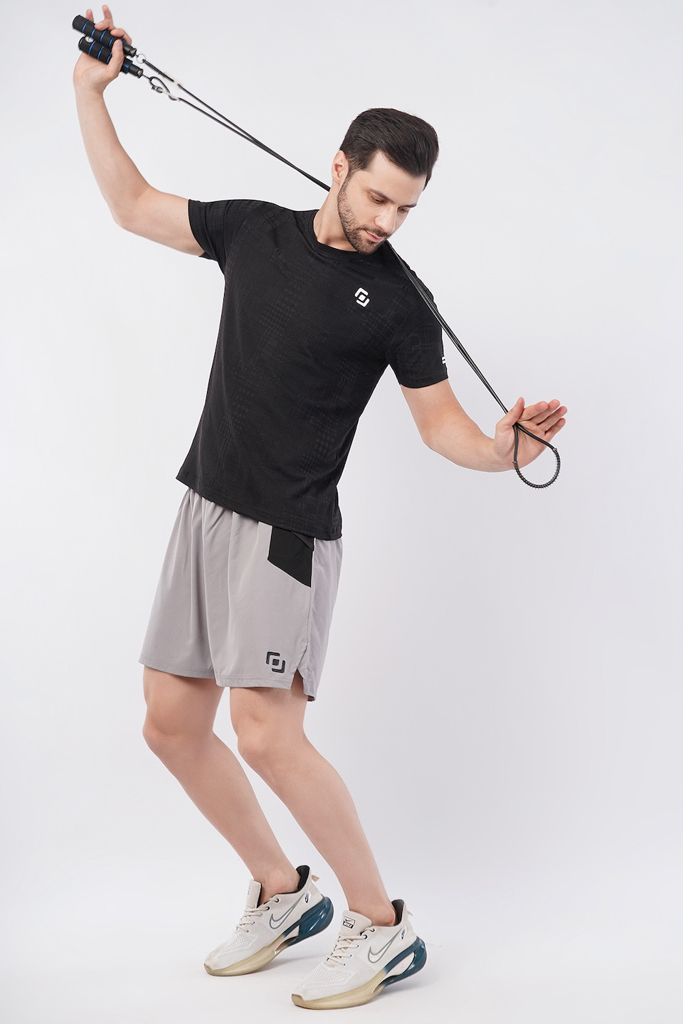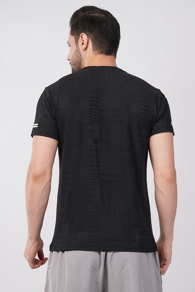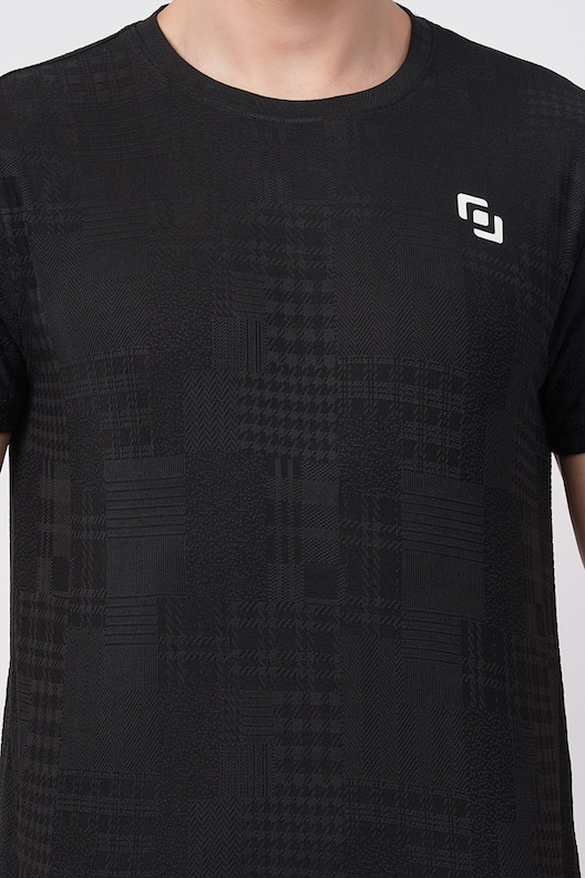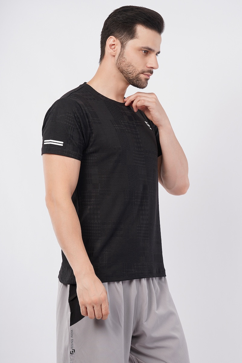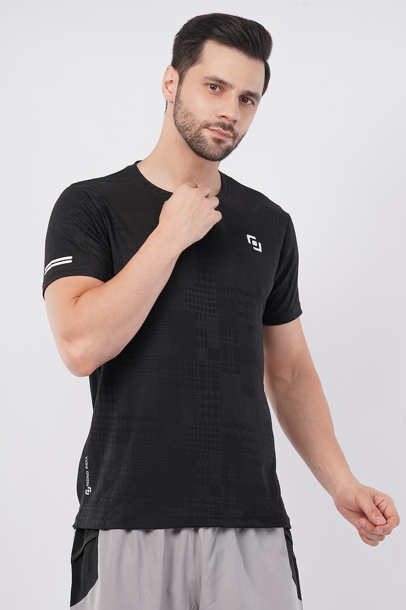 ASI Jaquard Lycra Fabric | Half Sleeve | Round Neck | T- Shirt | Super Streacable, Soft & Breathable | Both Men & Boys | Black