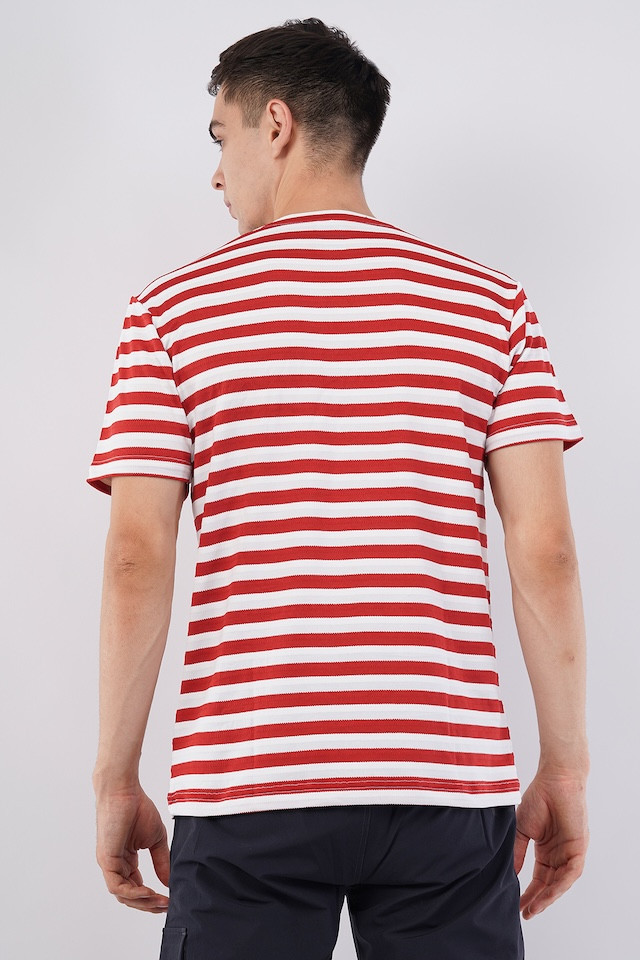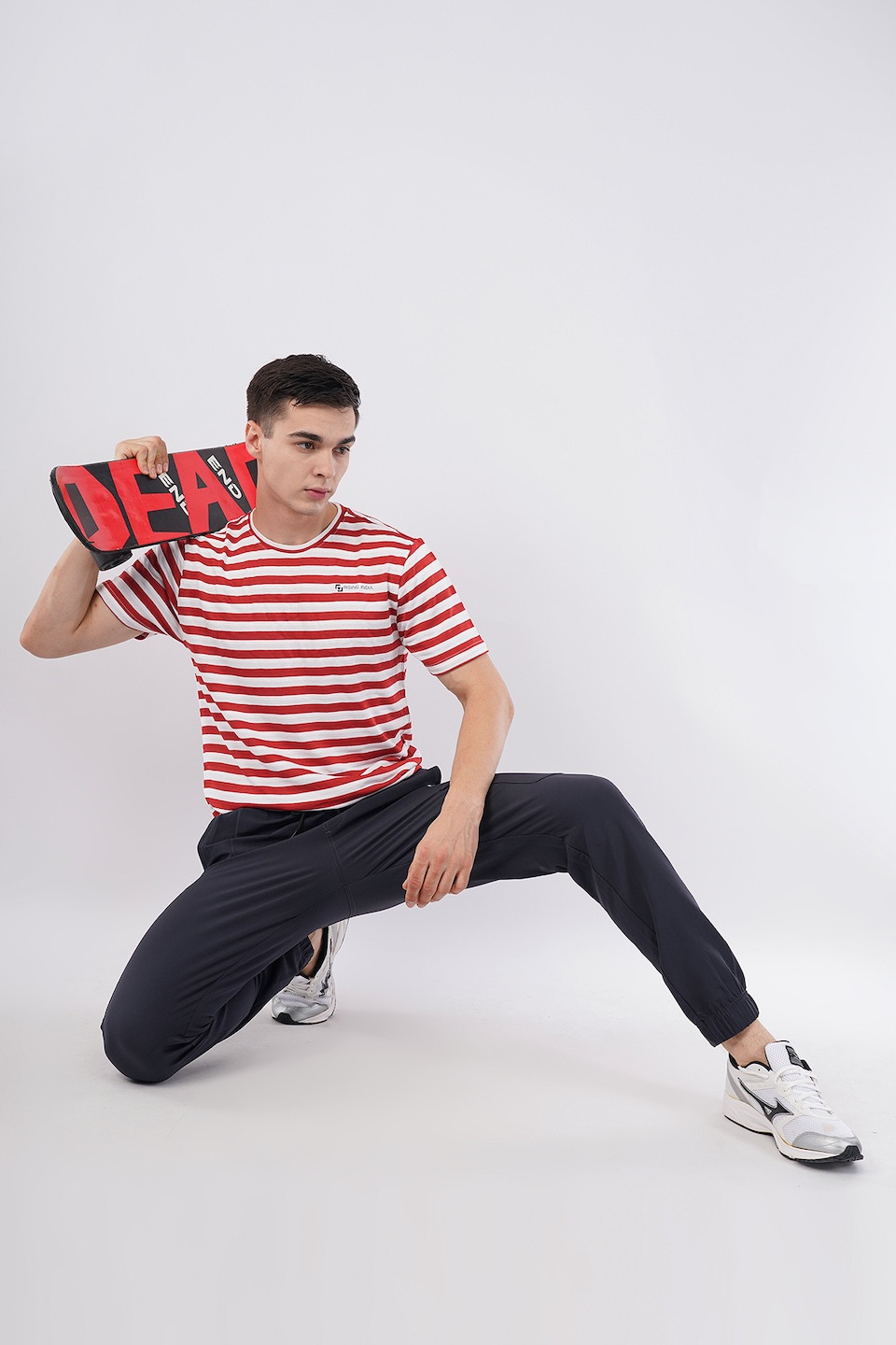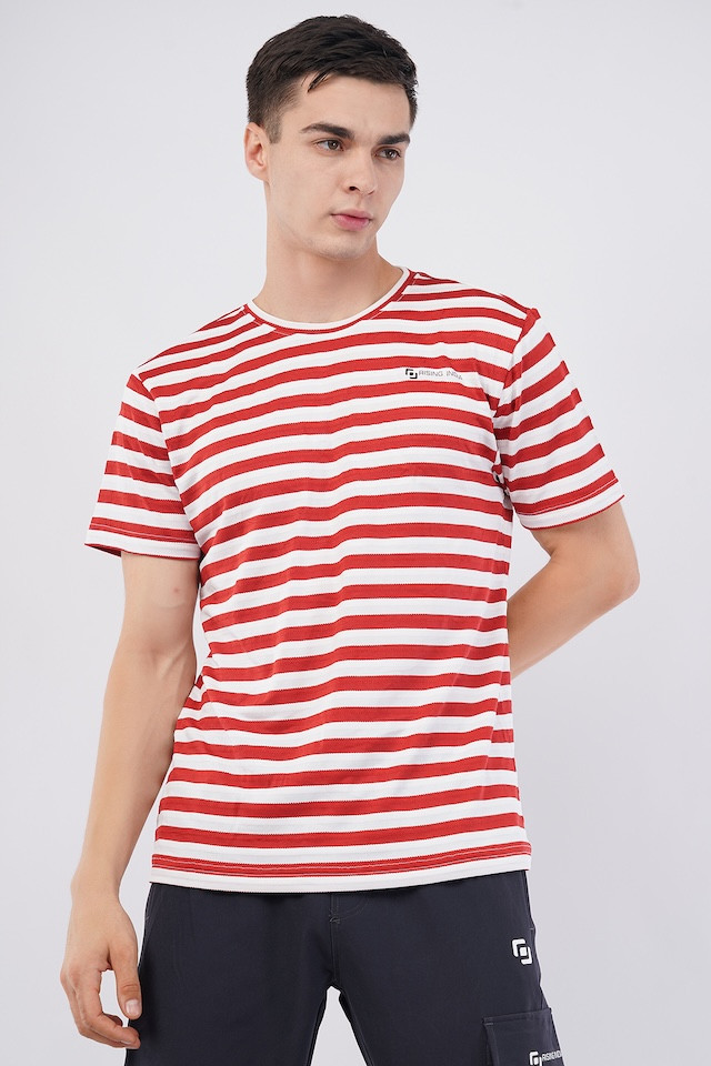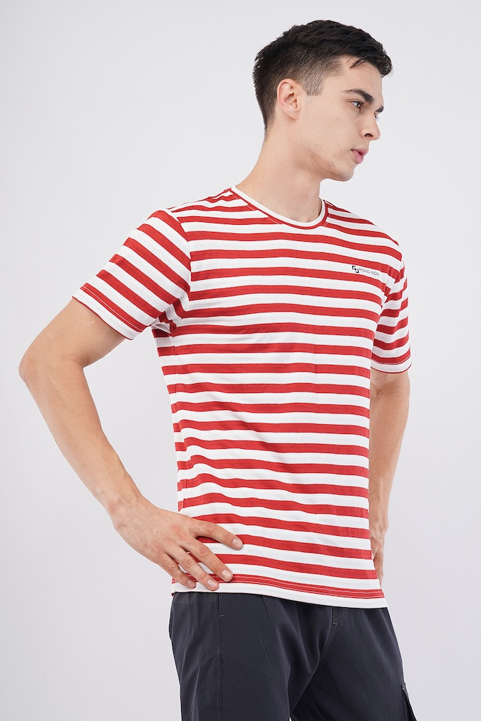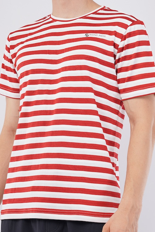 Benz Stripe Jaquard 2 way Lycra | Half Sleeve | Round Neck | T - Shirt | Breathable & Comfort | Regular Wear | White - Red