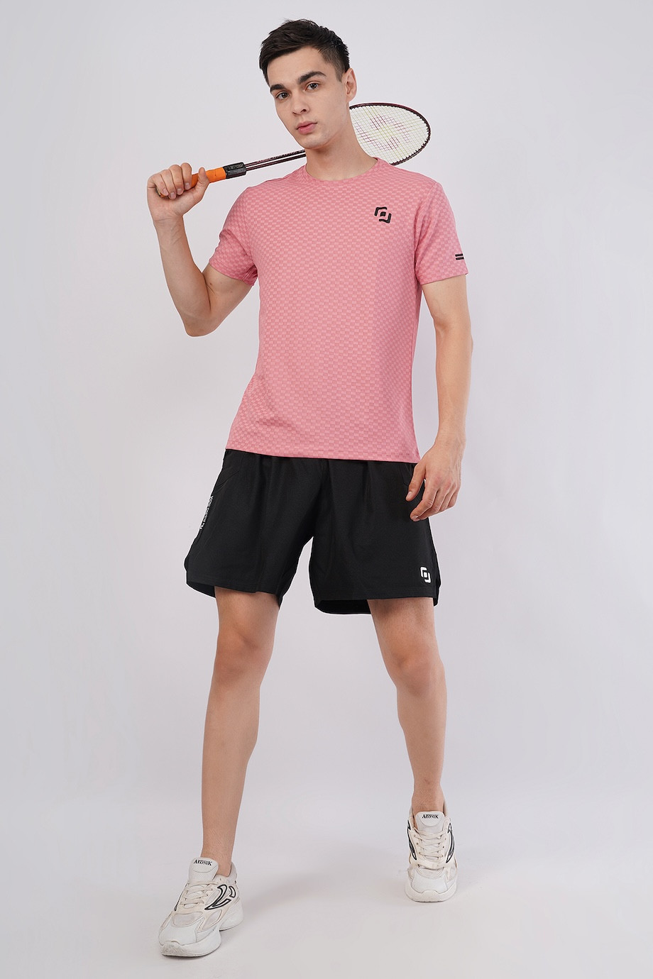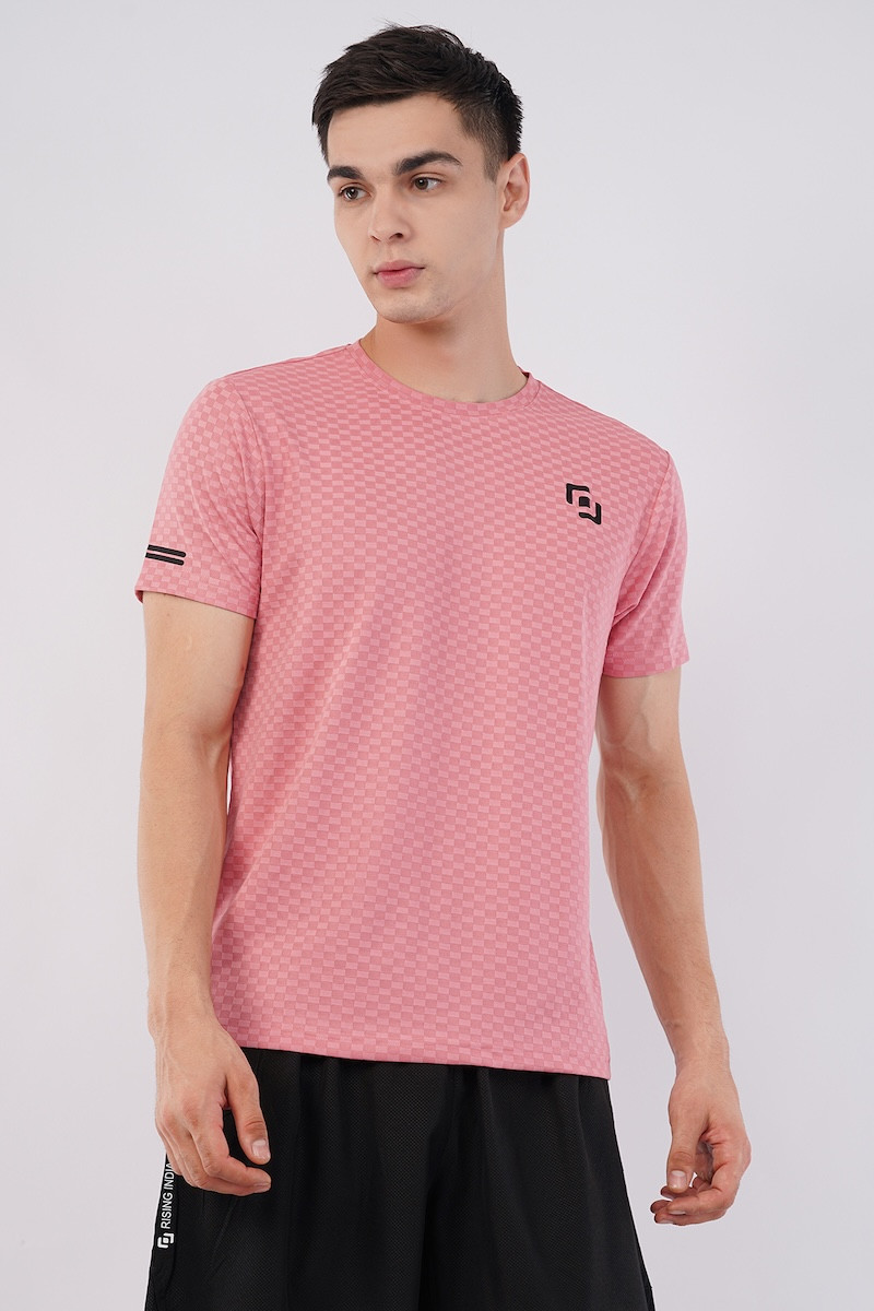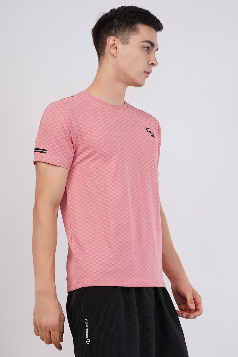 Check Jaquard Lycra | Half Sleeve | Round Neck | T-Shirt | Stylish & Trending| Summer & Winter Season | Light Peach