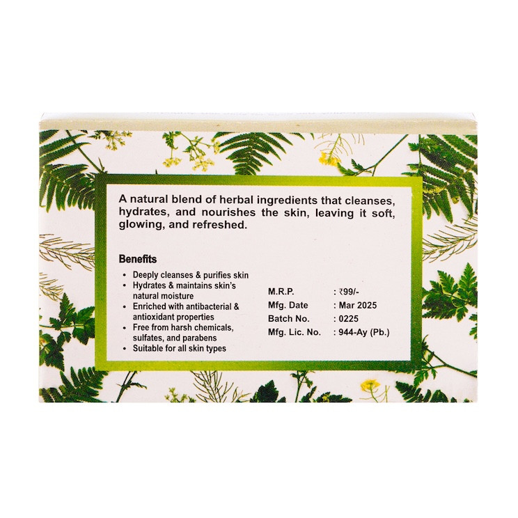 Infused with time-tested Ayurvedic ingredients, this soap helps restore your skin's natural glow while maintaining its softness and elasticity. Free from harsh chemicals, parabens, and synthetic fragrances, it's ideal for all skin types — even sensitive skin.