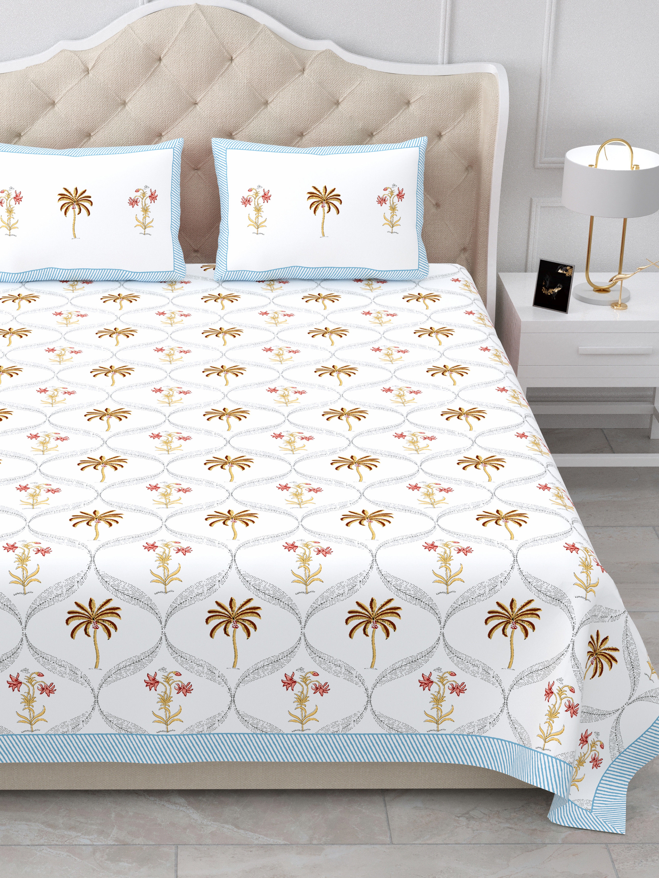 Jaipuri Hand Block Bedsheet | 3 Piece Hand Block | Bedsheet | Pillow | Thread Count | Cotton