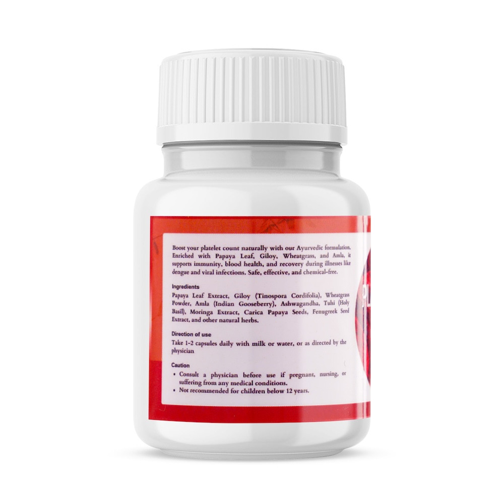 Platelets Increase Capsule | Natural Papaya Leaf Extract | Platelets Booster, Carica Papaya With Goodness Of Tulsi, Giloy, Moringa & Sadabahar I Improve Blood Platelets Count