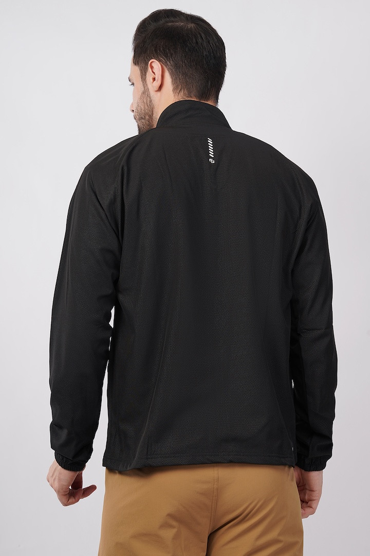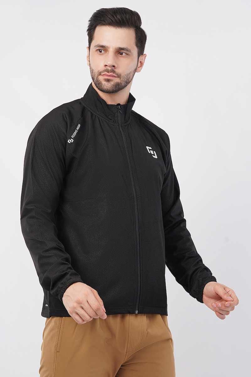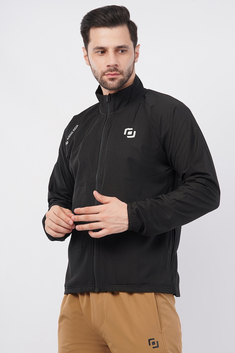 Sports Fit Men's Wear Full Sleeve Dot Print Zip Closer Jacket | Gym Workout, Running, Hiking, Travelling & Casual Wear | Black